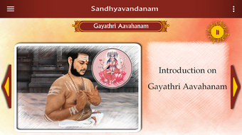 Ta aplikacja zapewnia kompleksowe rozwiązanie do wykonywania sandhyavandanam według yajur vedy bez pomocy nikogo. Została zaprojektowana w taki sposób, że jest bardzo łatwa w użyciu. Użytkownik musi tylko zainstalować aplikację i postępować zgodnie z krokami. Istnieje osobna karta dla każdego dnia, dzięki czemu użytkownik może łatwo przejść do wymaganego dnia i wykonać rytuał. Użytkownik musi wybrać między rytuałem porannym i wieczornym. Musi wybrać czas zgodnie z własnymi preferencjami.